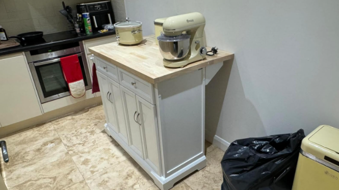 - The folding side board will add an extra 25cm to the depth of the worktop. Convenient and practical.
