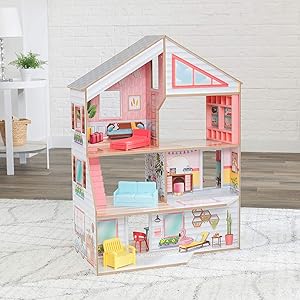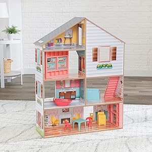 For dolls and figures under 7", the KidKraft Charlie Dollhouse boasts plenty of space. The furniture does double duty as storage too. The bed, stove, chair and sofa open up to hide accessories and other collectibles. Two built-in bookcases provide even more room for displaying those coveted collections. The colorful design extends all the way around so there's space for a few children to play at one time. Yay! No squabbling or elbowing each other for prime play spots. Kids will love that there are three stories to explore as well as cheerful decorations throughout. Imagine the stories that'll come from playing with this dollhouse. Parents will be overjoyed to have one central location for all their kids' tiny dolls and collectibles. Welcome the Charlie Dollhouse to your home.