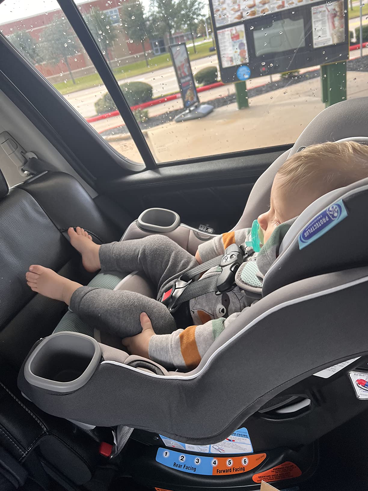 • Convertible car seat grows with your child from rear-facing harness ( 4-50lbs) to forward-facing harness (22-65 pounds)