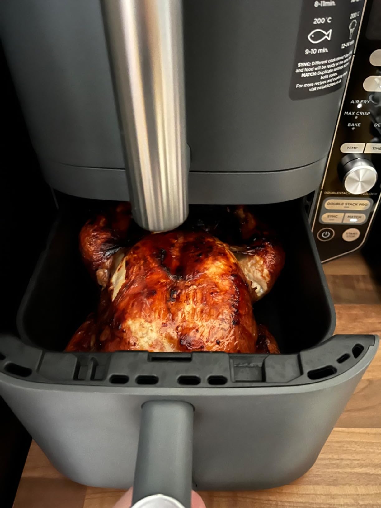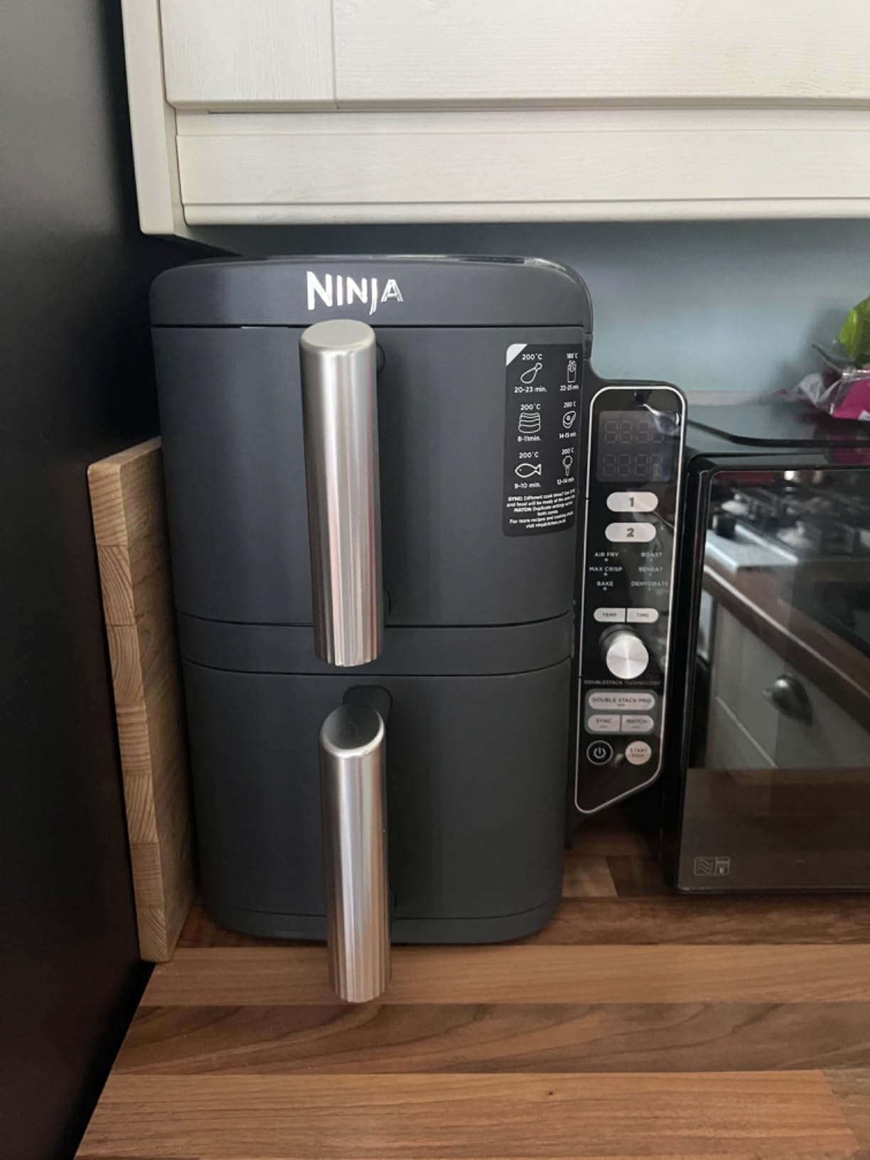 I’m really impressed with the Ninja Double Stack XL Air Fryer. Not only does its vertical dual-drawer design save valuable counter space, but it also fits neatly under my kitchen cabinets, which is a major improvement over my old single-basket tower air fryer, which was much bulkier. This Ninja model is surprisingly slim and allows me to cook two different foods at the same time, maximizing efficiency. It's also noticeably quieter when running. If you’re looking for a slim and high-quality air fryer, this model is definitely worth considering.