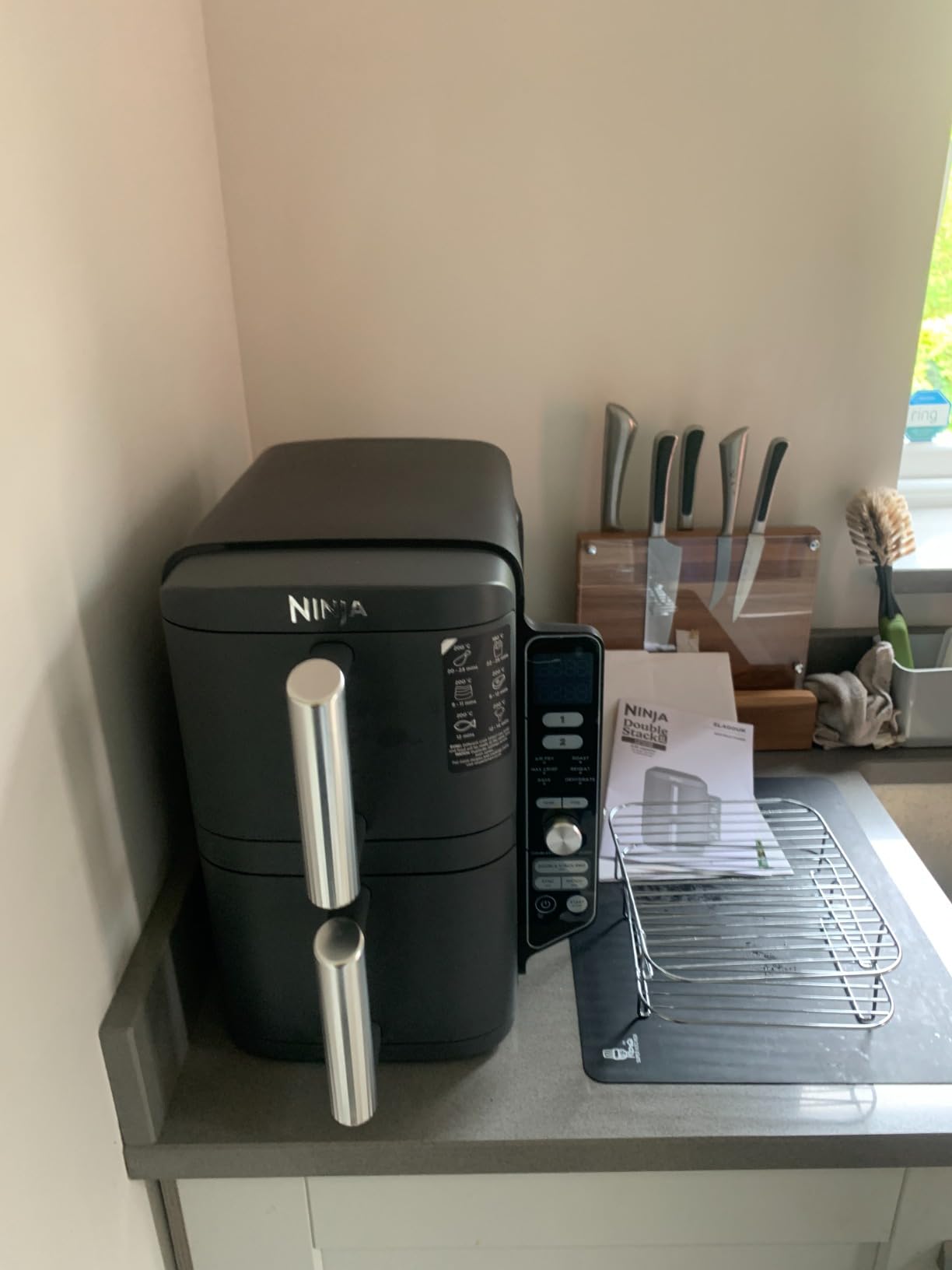 Originally had small airfryer, but as i got used to it felt i needed a larger one. Cannot fault it, this one does baking,dehydrating foods and roasting as well as normal airfryer.So easy to use and clearly marked for times and degree to be used.