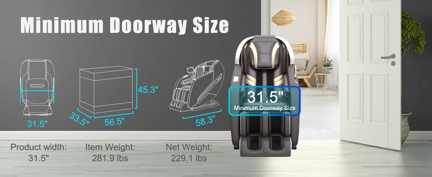 A: About 84"x37", make sure that there is at least 20“ in the back of the massage chair and enough space for the back of the chair to recline and the footrest to rise.